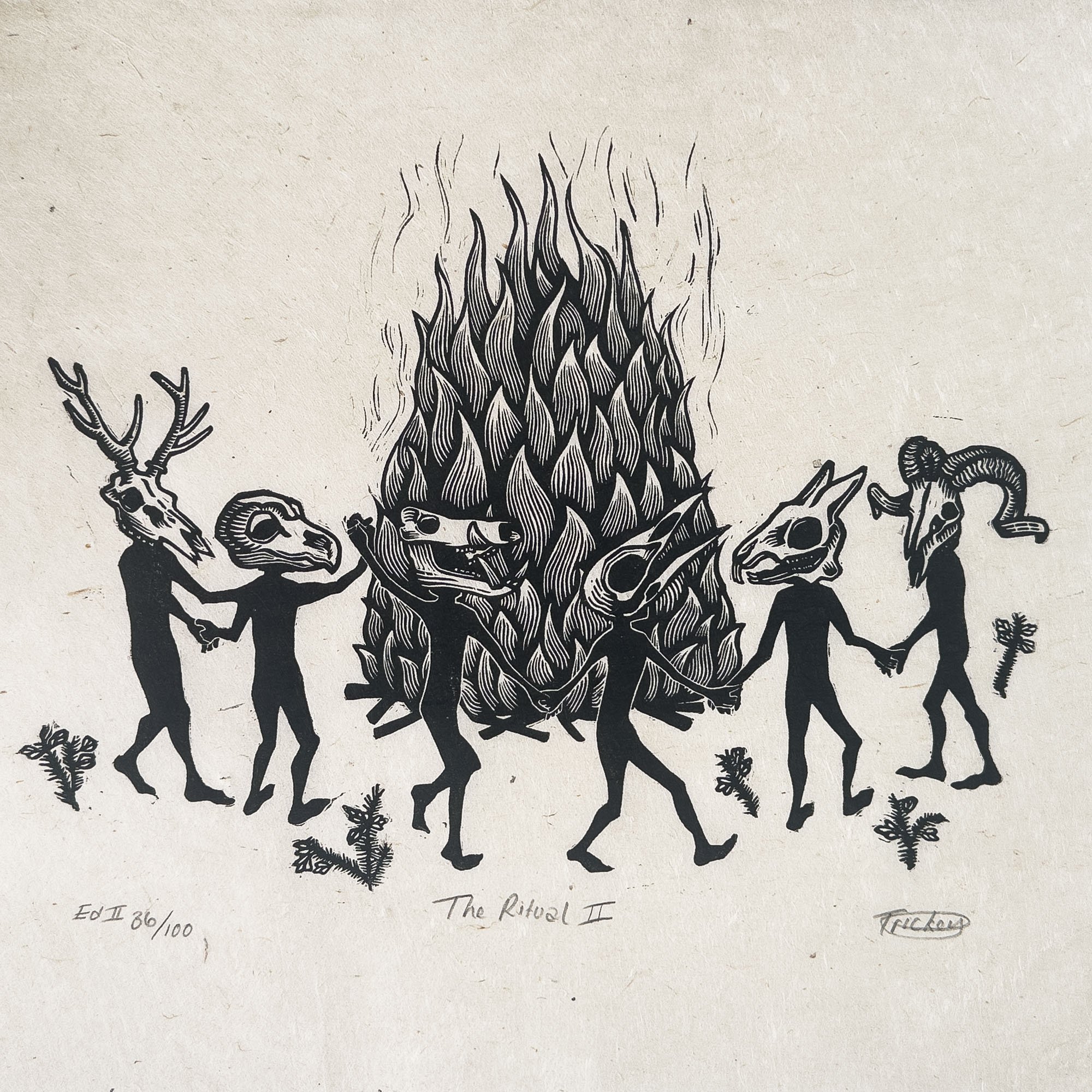 Signed and numbered limited edition of 100 (second edition) in black ink on 70 gsm handmade paper and measuring roughly 45 x 35cm.